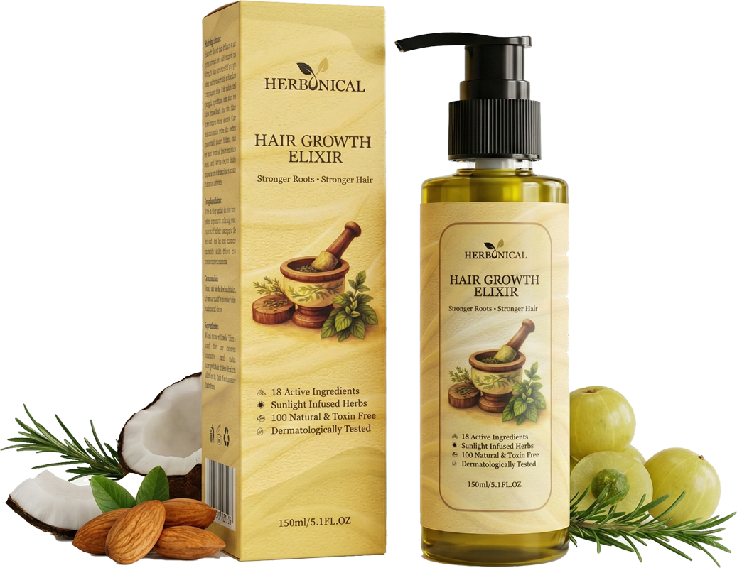End hair fall and restore thickness with Pakistan’s No.1 trusted Herbal Hair Growth Oil. Our zero-heat, sunlight-infused formula strengthens roots, activates growth, and guarantees a non-sticky feel.